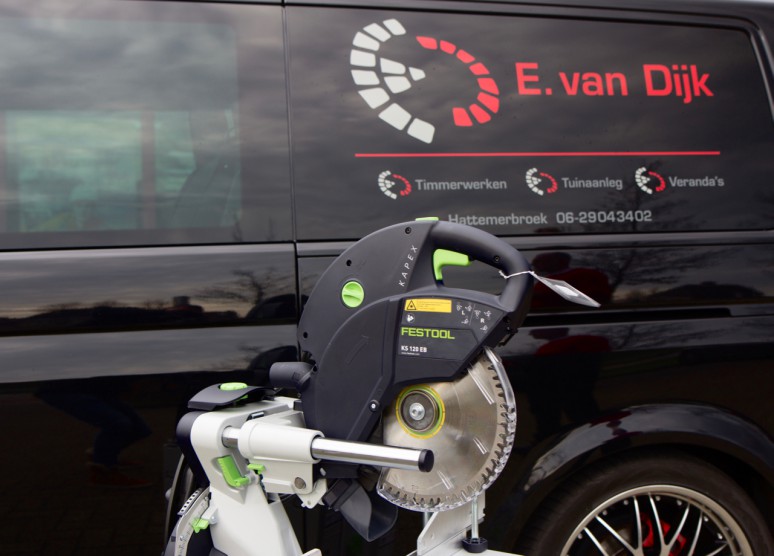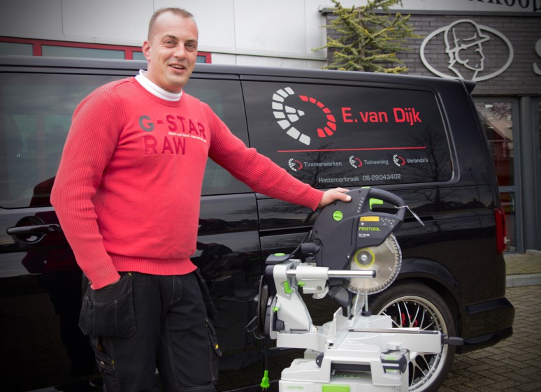 Eric van Dijk bestratingen is bij velen die hem kennen een begrip als het gaat om vakwerk en perfectie. Naast de bestratingen was het voor hem een logische stap om complete tuinen aan te leggen inclusief het bouwen van veranda's. Het bouwen van veranda's blijkt een goede keuze maar vergt veel van je machines. Eric wil dan ook alleen werken met hoogwaardige, professionele en betrouwbare machines met uiteraard veel verschillende functies, voor ons is het dan vanzelfsprekend dat je dan meteen aan Festool denkt. De afkort-trekzaag van Festool, de Kapex KS 120 EB heeft door de jaren heen al laten zien zien dat deze uniek is in zijn soort. Eric is nu al bezig om de rest van zijn machinepark te vervangen of uit te breiden met Festool. 3 jaar full service en diefstalverzekering zijn natuurlijk standaard inbegrepen. Klik hier om direct naar de Facebookpagina over de verandabouw te gaan.Via deze link komt u op de website van E. van Dijk.