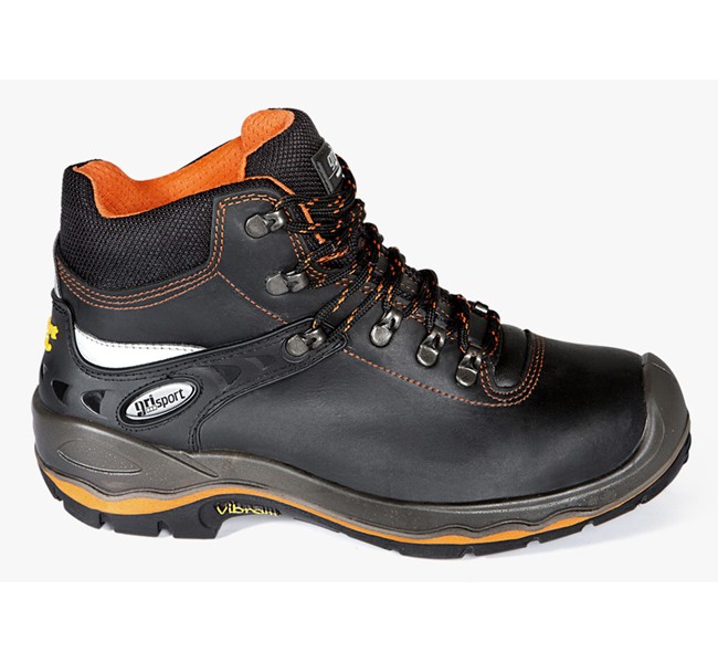 Merk: GrisportType: Hoog model S Veiligheidsklasse S3Gewicht (bij maat 42):1888 gramKleur: zwart/oranje, overneus: Ja, bovendeel: LeerVoering: Cambrelle®Zool pu/VIBRAM®Bijzonderheden: 300 graden contactwarmte, antistatisch. Cambrelle voering, stalen neus, versteviging bij de hiel voor extra support, uitneembare inlegzool