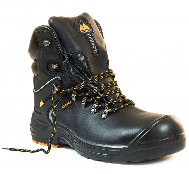 MONITOR SLEDGE• Art.nr. 100763-01• Maat 41-45• Zwart EN ISO 20345:2011 HRO S3 SRC • Extra brede leest• Buitenzool van nitrilrubber• Bovenstuk van echt leer• SS2-binnenzool• Met PU versterkte neus• HRO, hittebestendige buitenzool
