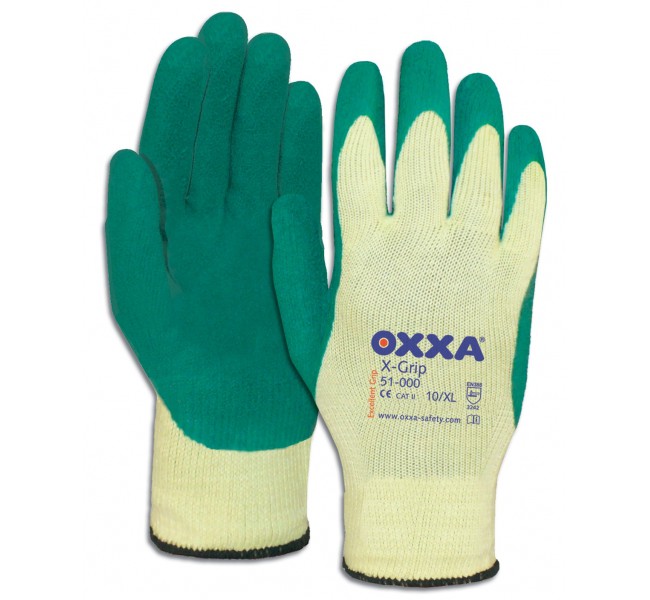 De Oxxa X-Grip 51-000 latex handschoenen groene palm zijn uitgevoerd met een latex coating op een polyester katoenen drager, wat de handschoen zeer duurzaam maakt met een goede schokdemping en snijweerstand. De Oxxa X-Grip 51-000 anatomische handschoenvorm biedt een betere greep en comfort tijdens langdurig gebruik. De Oxxa X-Grip 51-000 werkhandschoenen hebben zeer goede ventilatie aan de rugzijde van de hand wat zorgt voor absorbatie van de transpiratie.