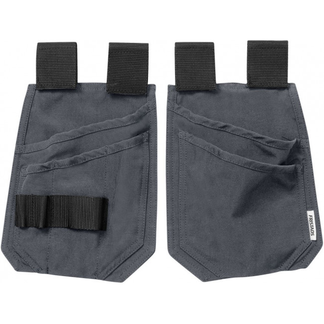 Gemakkelijk te bevestigen aan een riem en te gebruiken met elke broek / 2 met CORDURA® loshangende zakken, 1 met 3 kleinere zakken en gereedschapslussen, 1 met 1 extra zak / Bevestigd met klittenbandsluiting / Getest voor industrieel wassen volgens ISO 15797.