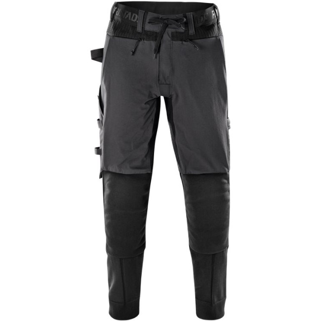 Volledig gebreide broek / Modern platgebreid materiaal met ventilatie in voorkant, in verhoogde taille achterzijde en in het kruis / 4-way stretchstof op voor-en achterkant dijbeen / Gevoerde elastische tailleband met Fristads-print en trekkoord / Dubbel verstevigde kruisnaad / 2 loshangende voorzakken van lichte CORDURA®-ripstop, 1 met 3 kleinere zakken en gereedschapslus en 1 met extra zak / De loshangende zakken kunnen worden weggestopt in zakken met een rits / 2 steekzakken / Hamerlus / Duimstokzak met knoop en lus voor werkmes / Beenzak met 1 telefoonzak / 1 achterzakken met rits / Reflecterende details op de achterkant van de knie / Slijtvaste gebreide kniezakken met opening aan de buitenkant / Kniezakken voor in hoogte verstelbare kniebeschermers / Goedgekeurd volgens EN 14404 in combinatie met kniebeschermers 124292 / OEKO-TEX® gecertificeerd.