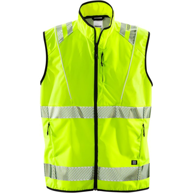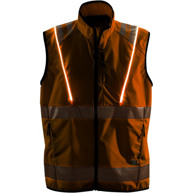 Winddicht en waterafstotend / Licht materiaal / Geperforeerde stof onder de oksels / Ritssluiting aan de voorkant over de volledige lengte / Borstzak met verticale rits / 2 voorzakken met rits / Elastische band in onderkant, armsgaten en kraag / LED-kabel voor naar achter / Zak met rits voor LED-accu (inclusief) op de achterkant / De besturingseenheid heeft 4 lichtstanden, Laag, Medium, Max en Knipperend / Bedrijfsmodus op een volledig opgeladen batterij, is tot 12 uur bij gebruik van een gemiddelde lichtintensiteit / De bedrijfstemperatuurbereik van de eenheid ligt tussen -15°C en +40°C. Bij lagere temperaturen dan -15°C daalt de capaciteit aanzienlijk en bij temperaturen boven de 40°C schakelt het apparaat automatisch uit / Voor het opladen adviseren wij onze adapter met micro USB, 131967 / Valt groot, kies een maat kleiner / Goedgekeurd volgens EN ISO 20471 klasse 2.