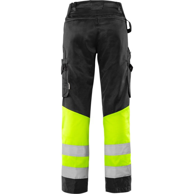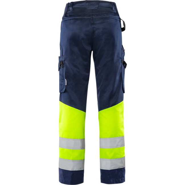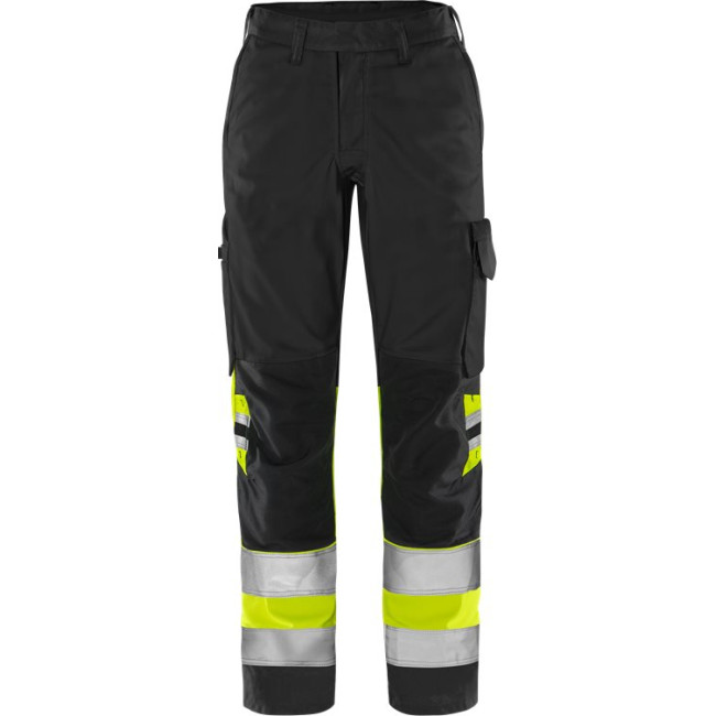 Duurzame en lichtgewicht high-vis broek voor dames. Gemaakt van biologisch katoen en gerecycled polyester. Volledig uitgerust met functionele zakken en stretchpanelen in de taille voor extra comfort. Met EPD (Environmental Product Declaration).