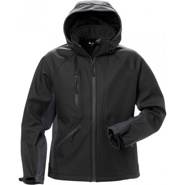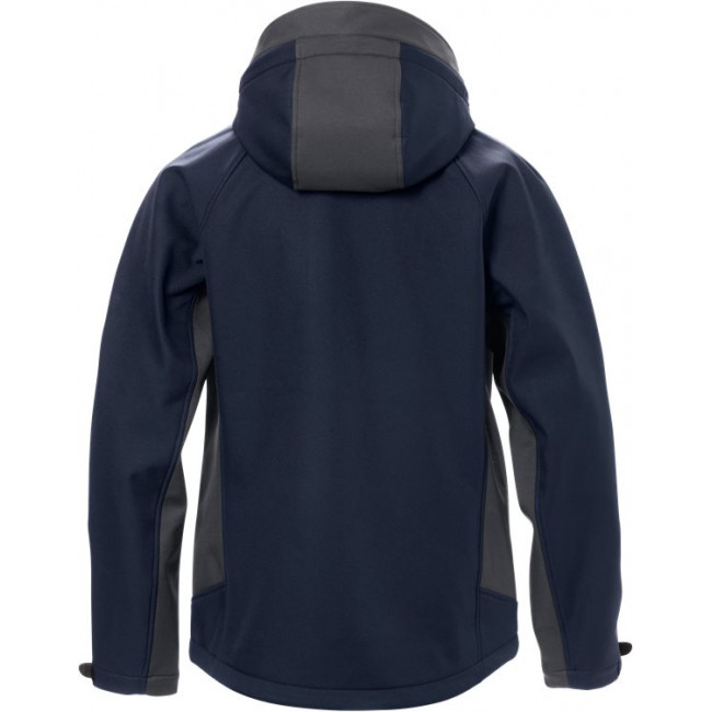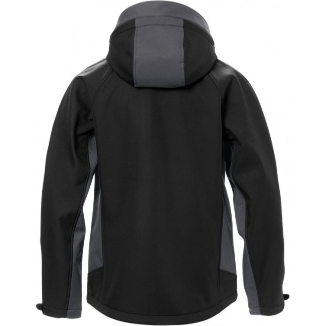 Winddicht softshelljack met contrasterende details en afneembare capuchon. Geschikt voor transferbedrukking. Met vrouwelijke pasvorm.