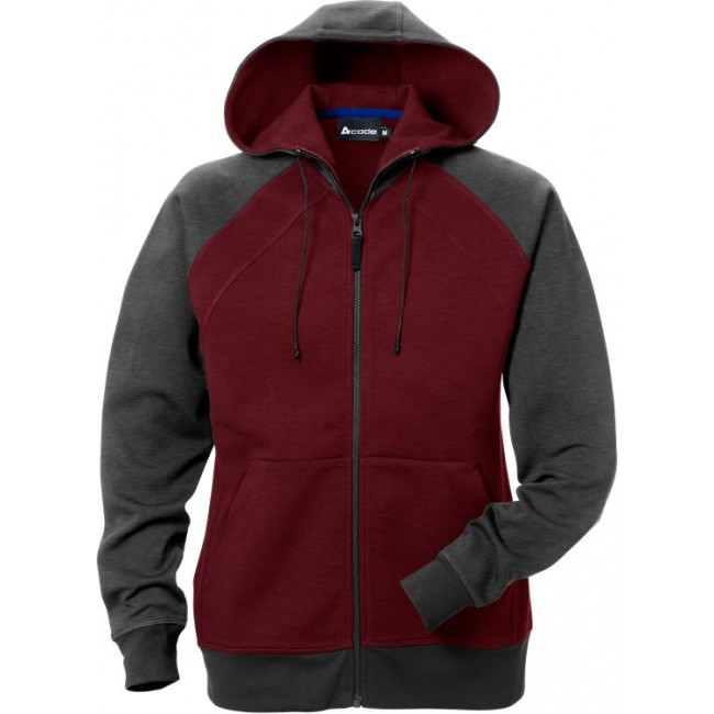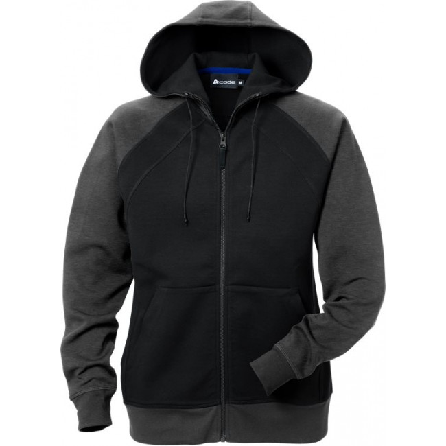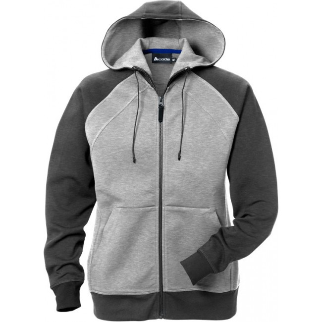 Double face doek / Capuchon verstelbaar met koord / Ritssluiting aan de voorkant over de volledige lengte / 2 voorzakken met rits / Raglanmouwen / Ton sur ton stiksels / Ribgebreide manchetten en onderkant. Belangrijke informatie over het bedrukken van logo's op dit artikel in de kleur 996 zwart/grijs. We adviseren u om een borduring te gebruiken als u een logo wilt aanbrengen op dit artikel. Dit kledingstuk kan niet worden bedrukt met een transfer omdat het risico bestaat op kleurmigratie van het oppervlak van het kledingstuk. (kleur van het kledingstuk kan door de transfer heen komen)