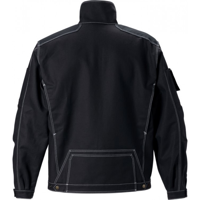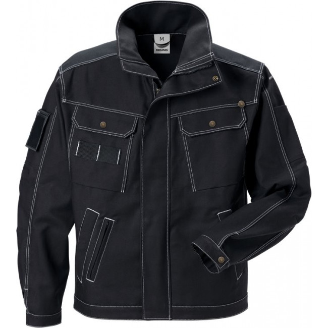 Duurzaam jack van slijtvaste 100% FAS®-katoen met een klassiek ontwerp met voorzakken en verdekte rits in de voorkant.