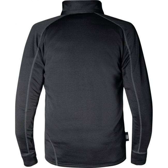 Polartec® Power Stretch®-microfleece / Transporteert vocht / Hoog ademend vermogen / Droogt zeer snel/ hoog warmend vermogen / Zwart met gele contrasterende naden / Rits tot bovenin kraag / Borstzak met rits / OEKO-TEX® gecertificeerd.