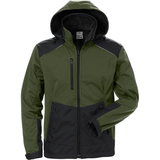 Comfortabel softshelljack met flexibele teddyvoering. Een zacht winddicht en waterafstotend winterjack met verstevigingen op kwetsbare delen en afneembare capuchon.