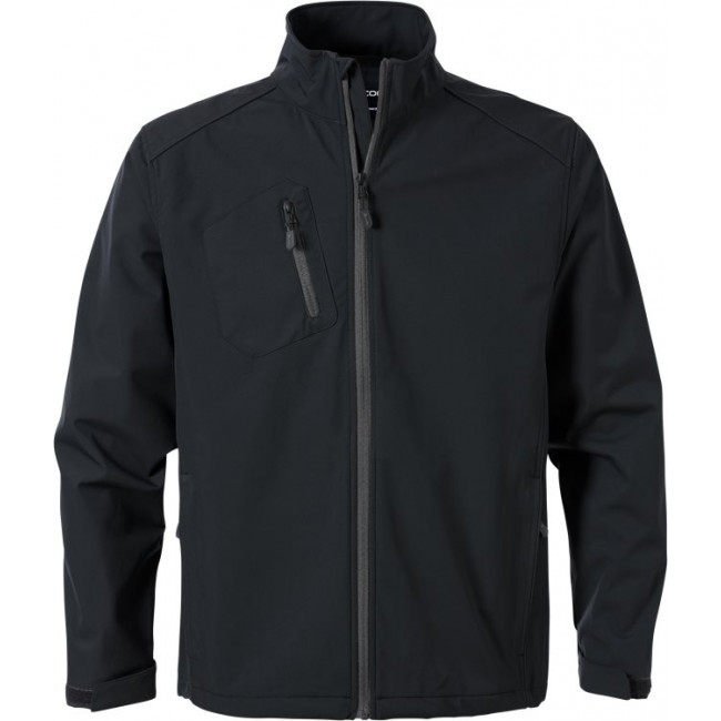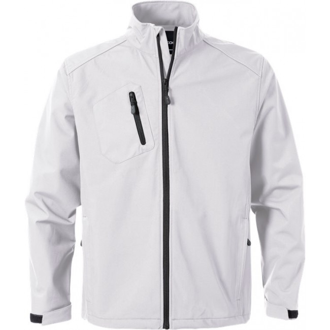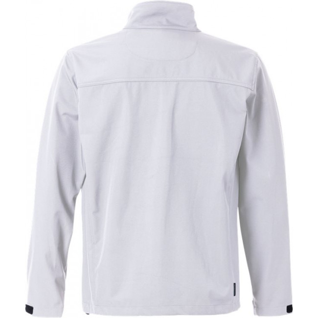 Licht softshelljack van winddicht en waterafstotend materiaal met voorzakken met rits en zijzakken met verdekte rits.