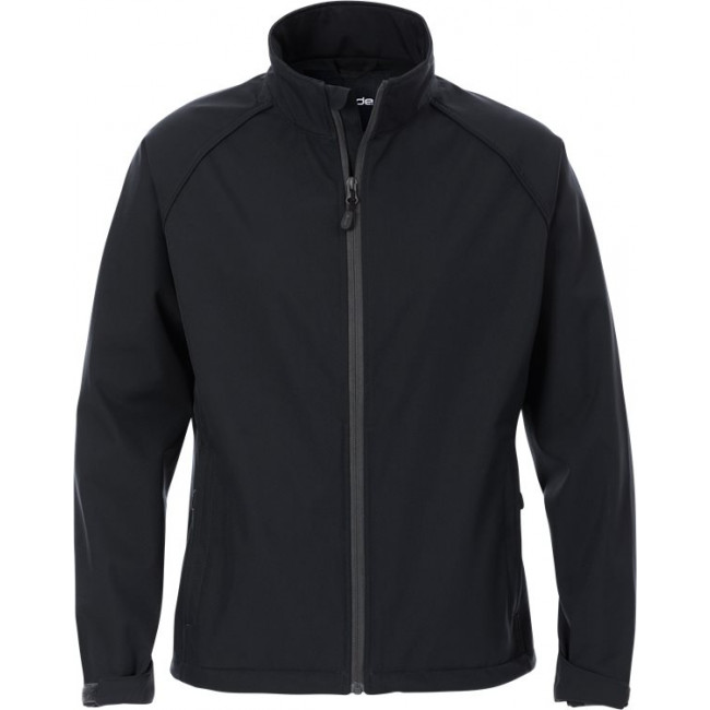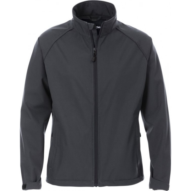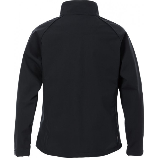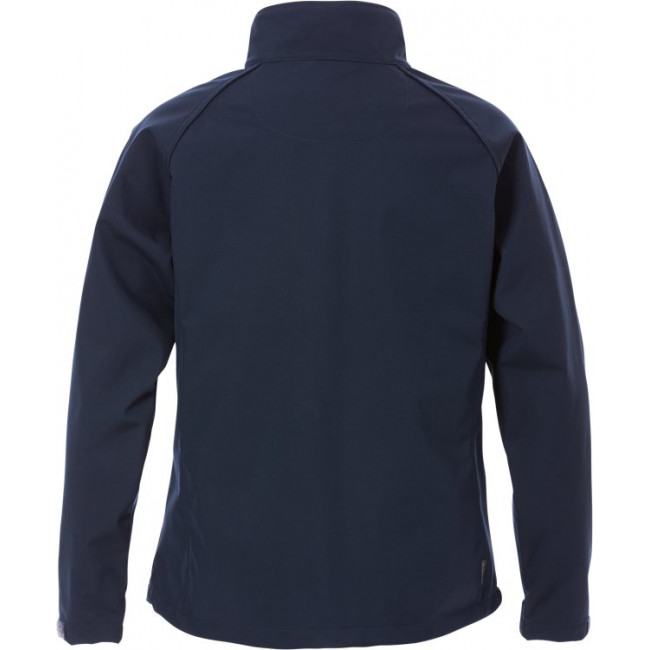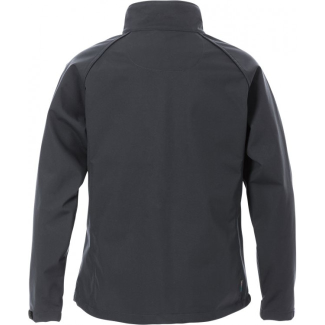 Licht softshelljack van winddicht en waterafstotend materiaal met een vrouwelijke pasvorm en zijzakken met verdekte rits.