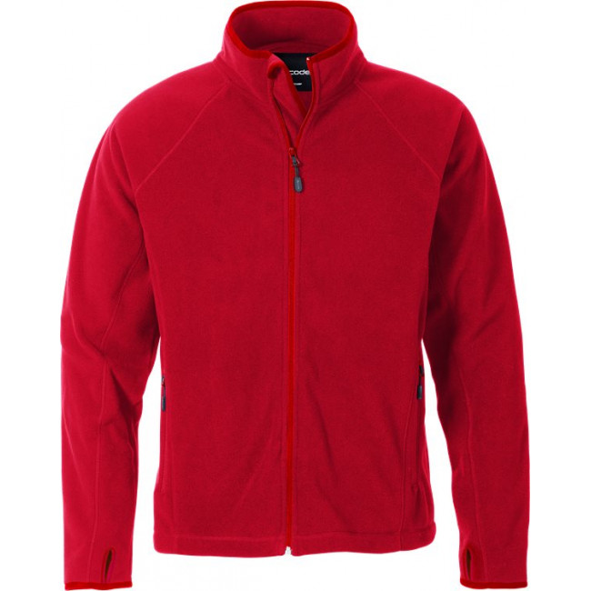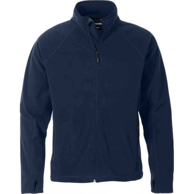 Ritssluiting aan de voorkant over de volledige lengte met daarachter een klep / 2 voorzakken met rits / Verlengd rugpand / Raglanmouwen / Ton sur ton elleboogstukken / Duimlus / Elastische rand aan het mouwuiteinde.