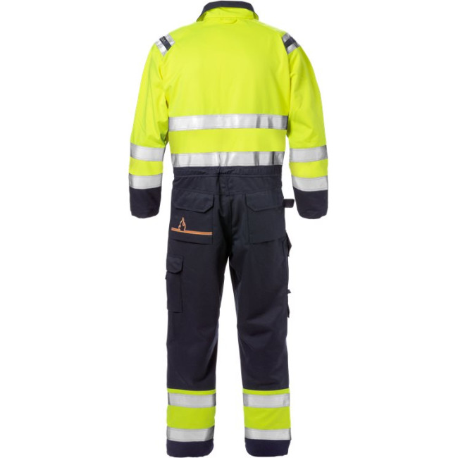 Gecertificeerde, vlamvertragende overall met hoge zichtbaarheid met inherente vlambescherming. Metaalvrij multinorm kledingstuk voor gebruik in ATEX-omgevingen.