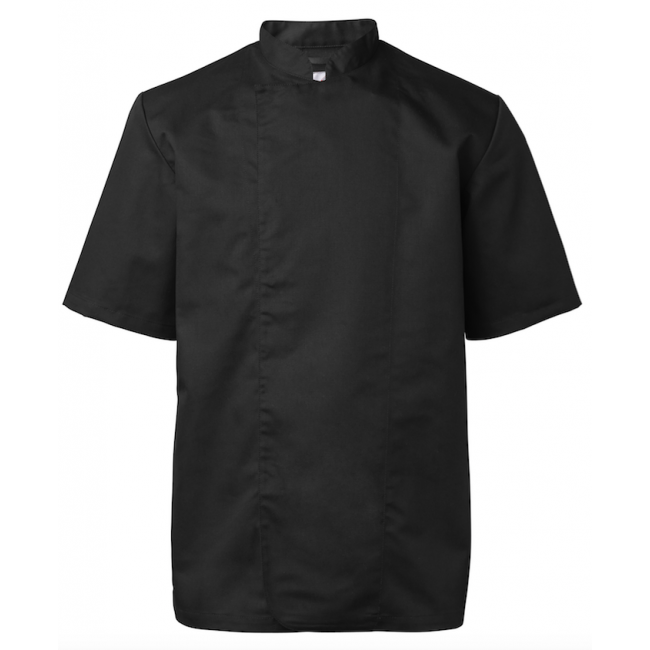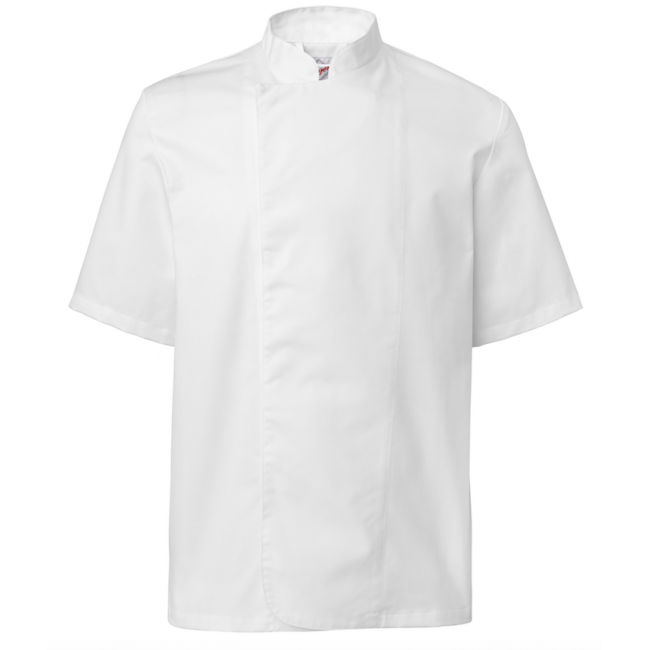 Recht model met naden op de rug. Met handige blinde drukknoopsluiting. Lus in de kraag. Stof : 210 gr/m2