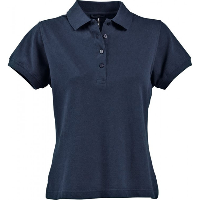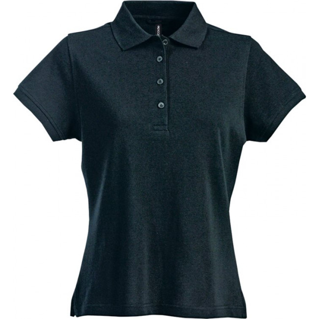 Klassiek poloshirt van dikke stof met platgebreide kraag. Vrouwelijke pasvorm.