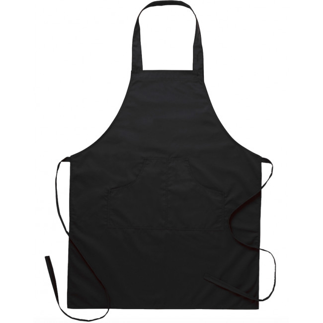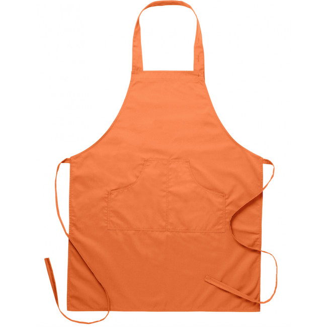 Ca. 75 x 90 cm. Verstelbare nekband met knopen. Kangoeroezak met lus voor sleutels.