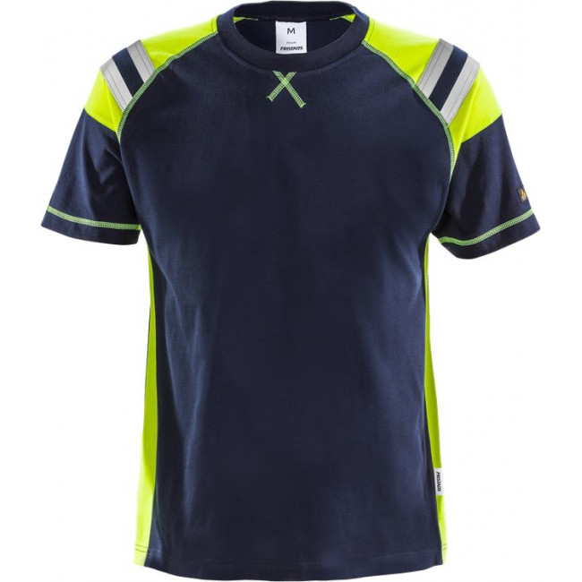 Zacht en comfortabel T-shirt van gebreid materiaal met inherente vlambescherming. Felgele inzetstukken voor extra zichtbaarheid. Goedgekeurd voor industrieel wassen.