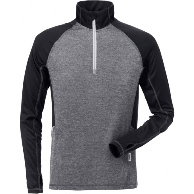 Voert transpiratie af . Korte ritssluiting . 1 verborgen zijzak met rits . Duimlus . OEKO-TEXR gecertificeerd.
