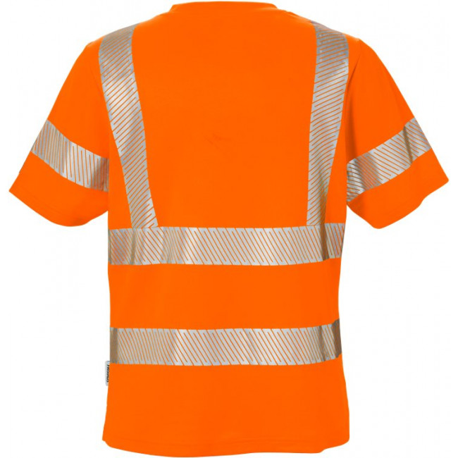 Ronde hals / Gestreepte reflecterende transfer / Zijsplitten / Goedgekeurd volgens EN 13758-2 UPF 40+ zon UV-beschermende eigenschappen en EN ISO 20471 klasse 2 / OEKO-TEX® gecertificeerd.