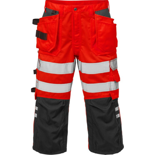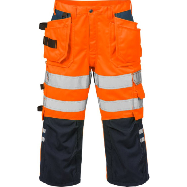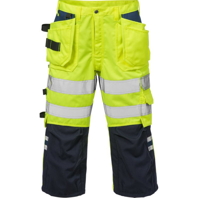 Broek met gecertificeerde hoge zichtbaarheid met 3/4 lengte, van vuil-, olie en waterafstotend materiaal met een zachte, katoenen binnenkant en CORDURA®-verstevigingen op blootgestelde gedeelten.