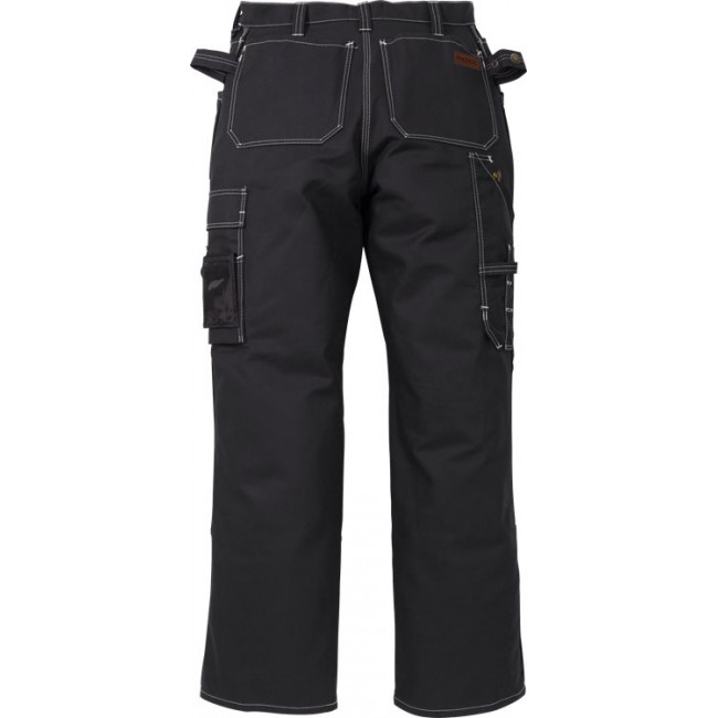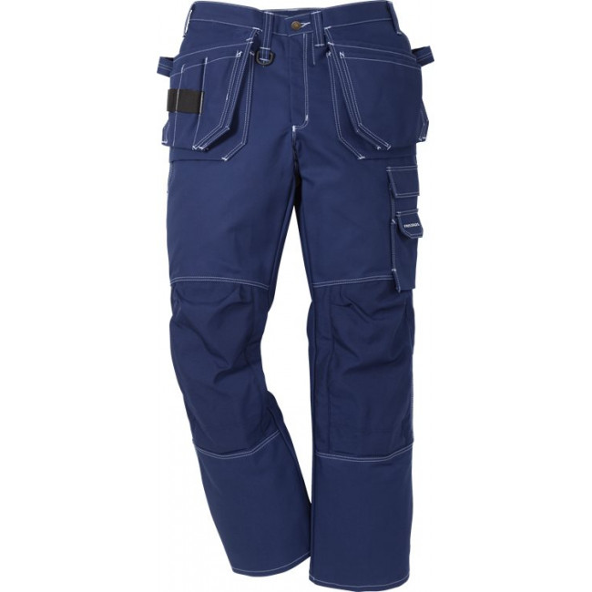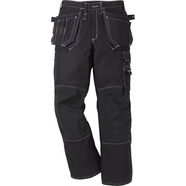 FAS® Fristads beste keperkatoen / 2 met CORDURA® verstevigde loshangende zakken, 1 met 3 kleine zakken en gereedschapslussen, 1 met gereedschapszak en gereedschapslussen / De zakken zijn weg te steken / 2 ruime voor- en achterzakken / 2 hamerlussen, waarvan 1 verstelbaar / Met CORDURA® verstevigde duimstokzak met pennenzak en knoop en lus voor werkmes / multifunctionele beenzak met klep, telefoonzakje en verborgen ID-pashouder / Met CORDURA® verstevigde kniezakken met opening aan de binnenkant / Kniezakken voor in hoogte verstekbare kniebeschermers / Goedgekeurd volgens EN 14404 samen met kniebeschermers 124292 / OEKO-TEX® gecertificeerd.