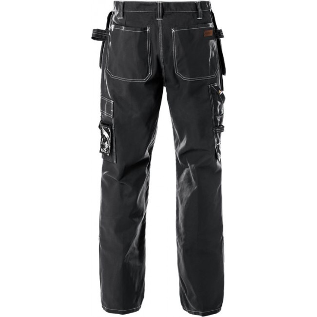 FAS® Fristads beste keperkatoen / 2 met CORDURA® verstevigde loshangende zakken, 1 met 3 kleine zakken en gereedschapslussen, 1 met gereedschapszak en gereedschapslussen / De zakken zijn weg te steken / D-ring / 2 ruime voor- en achterzakken / 2 hamerlussen, waarvan 1 verstelbaar / Met CORDURA® verstevigde duimstokzak met pennenzak en knoop en lus voor werkmes / Multifunctionele beenzak met klep, telefoonzakje en verborgen ID-pashouder / Met CORDURA® verstevigde kniezakken met opening aan de buitenkant / Kniezakken voor in hoogte verstelbare kniebeschermers / Goedgekeurd volgens EN 14404 samen met kniebeschermers 124292 / OEKO-TEX® gecertificeerd.