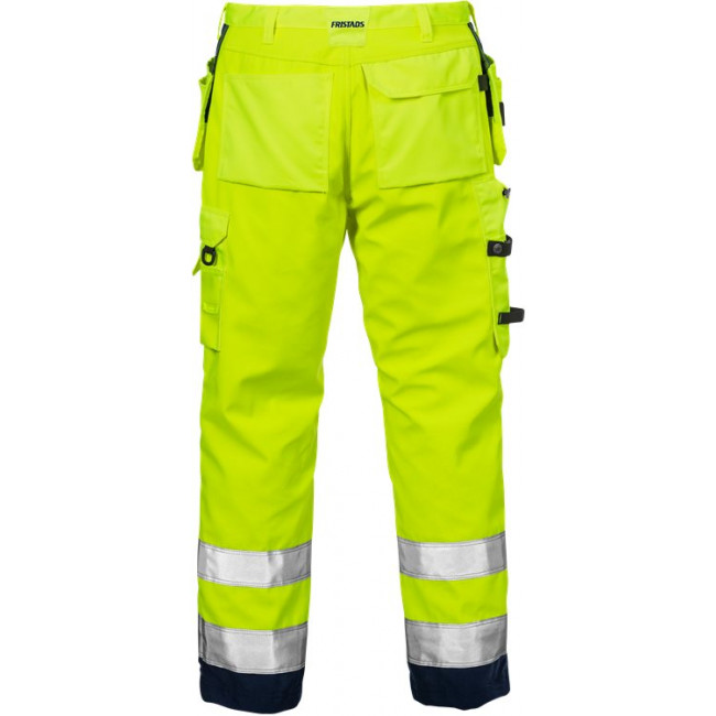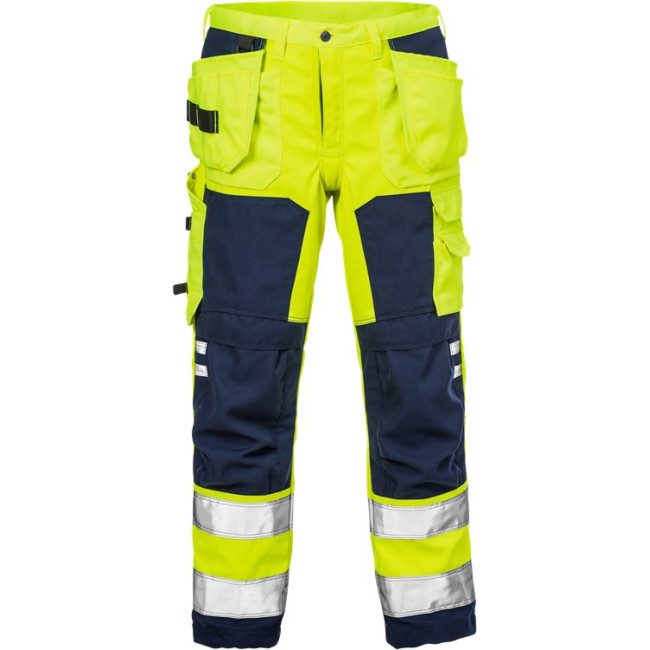 Ademend, winddicht en waterafstotend materiaal / Mechanische stretch / 2 loshangende met CORDURA® verstevigde weg te steken zakken, linkerzak met extra zak en rechterzak met 3 zakken en gereedschapslussen / 2 voorzakken met drukknoopsluiting / D-ring aan taille / 2 achterzakken, 1 achterzak met klep / Beenzak met klep en klittenbandsluiting, telefoonzakje met klep en klittenbandsluiting, D-ring en ID-kaart zakje / Hamerlus / Met CORDURA® verstevigde zak voor duimstok met gereedschapszak, 2 knopen en lussen voor 2 messen / Verstevigde vlakken op de dijbenen in contrasterende kleur / Met CORDURA® verstevigde kniezakken met opening aan de buitenzijde / Kniezakken voor in hoogte verstelbare kniestukken / Met CORDURA® verstevigde broekspijpuiteinden / Verstelbare broekspijpuiteinden met intern elastiek / Goedgekeurd volgens EN 14404 samen met kniebeschermers 124292 en EN ISO 20471 klasse 2 / OEKO-TEX® gecertificeerd.