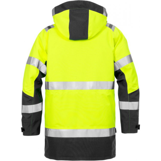 Winterparka met hoge zichtbaarheid van hoge kwaliteit GORE-TEX-materiaal met perfecte bescherming tegen wind en regen, met veel functionele zakken. Kan het hele jaar door worden gedragen dankzij de uitneembare binnenvoering.